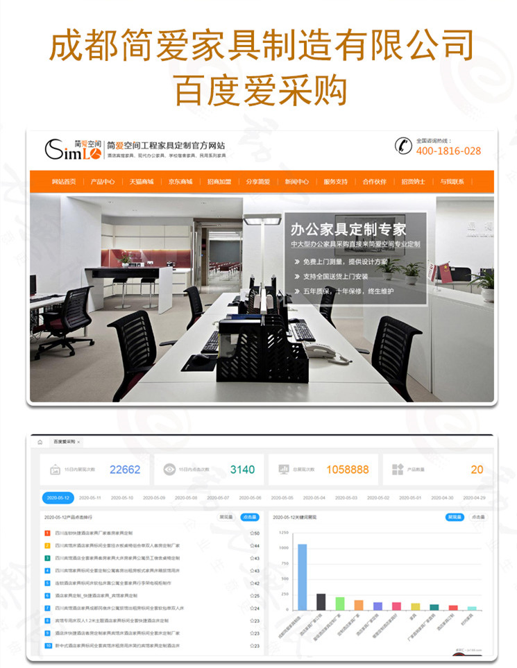 成都簡(jiǎn)愛家居制造有限公司,入駐百度愛采購以來,總展現(xiàn)次數(shù)高達(dá)105888,近15天內(nèi),展現(xiàn)次數(shù)為22662,點(diǎn)擊數(shù)達(dá)到3140次。