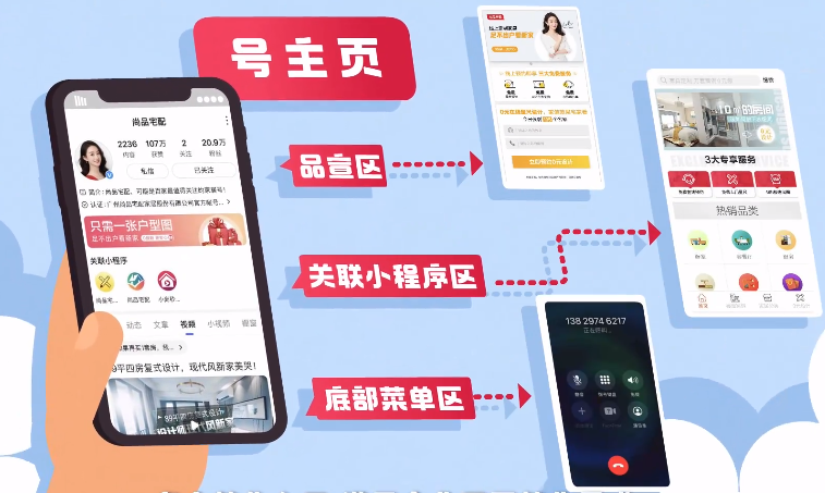 企業百家號主頁分5大模塊:固定頭部、品宣區、小程序、多樣內容、底部菜單。