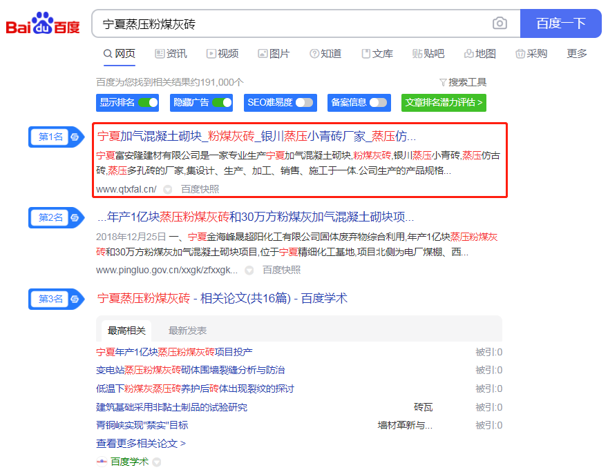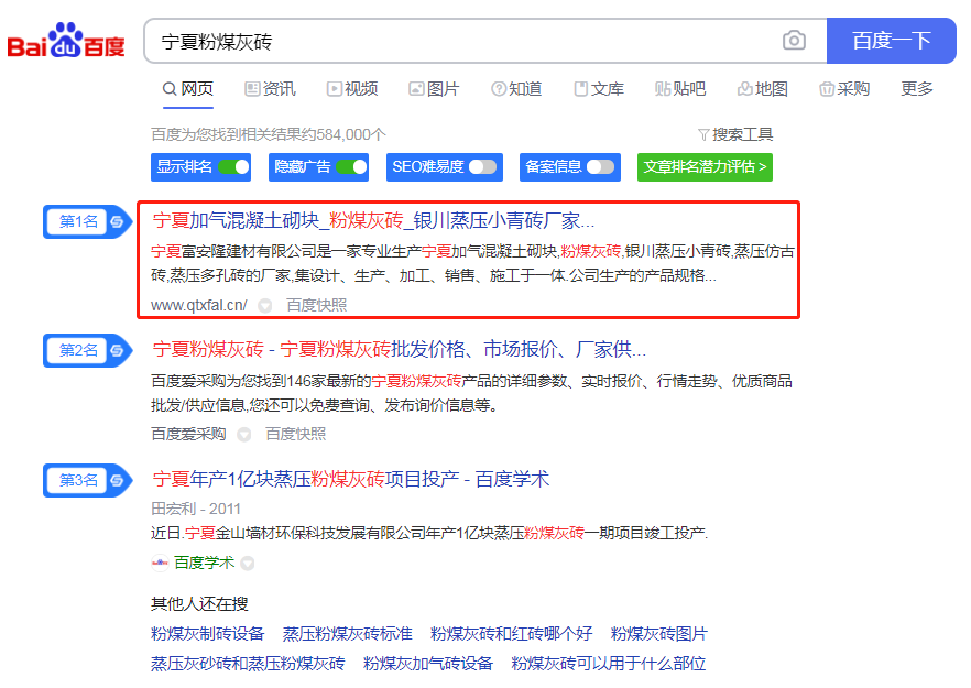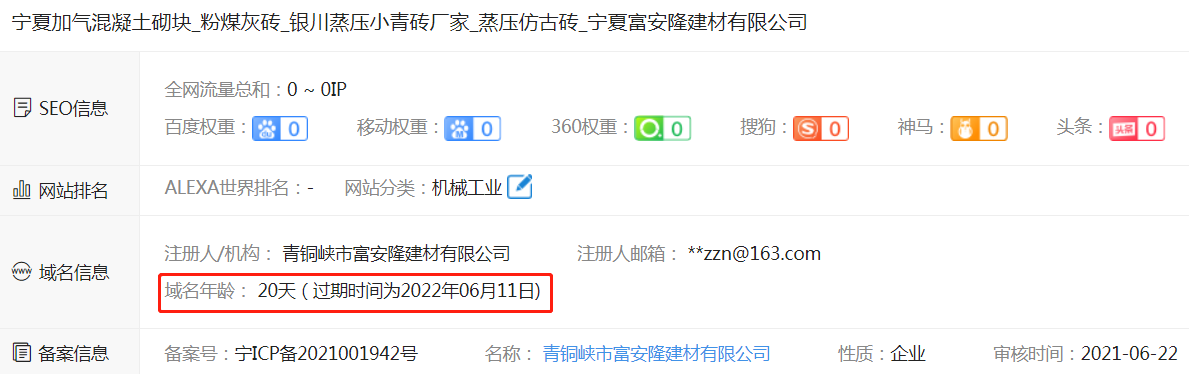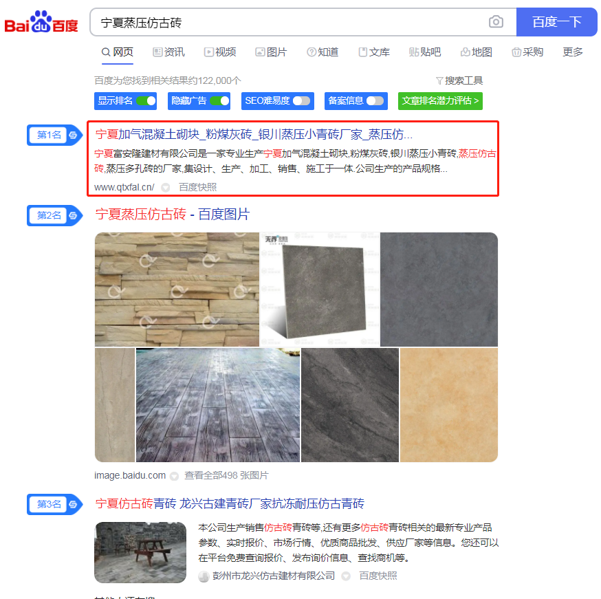 富安隆建材網(wǎng)站上線(xiàn)后,僅用了10天的時(shí)間,就被百度收錄,關(guān)鍵詞:寧夏蒸壓粉煤灰磚、寧夏粉煤灰磚、寧夏蒸壓仿古磚均占據(jù)首頁(yè)*名。此外,富安隆建材網(wǎng)站的到訪(fǎng)率和詢(xún)盤(pán)量正在持續(xù)上升中,相信很快就能迎來(lái)成交。