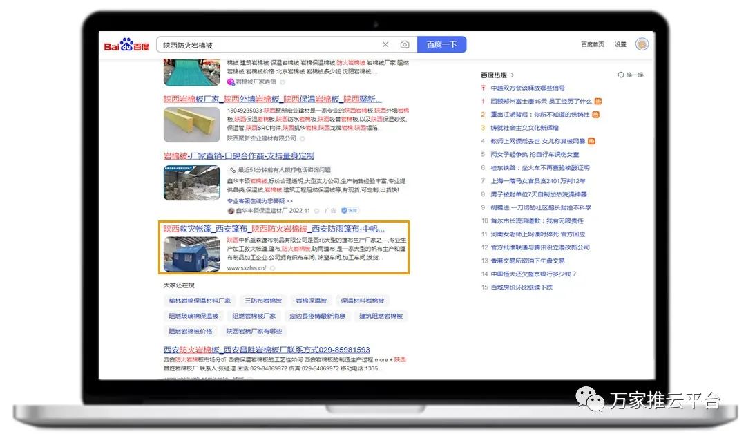 萬家推云平臺通過企業官網SEO、知識獲客、分類信息、B2B商盟、視頻發布等工具在各大搜索引擎平臺,為中帆盛森企業進行關鍵詞推廣以及內容發布。通過運營人員專業布局,成功為中帆盛森增強企業曝光度,獲取核心排名,抓住更多流量。